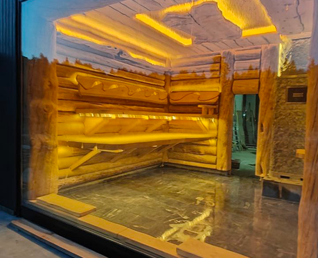 Конструкция бани из кело обеспечивает эффективную циркуляцию воздуха, что позволяет равномерно распределять тепло и пар.