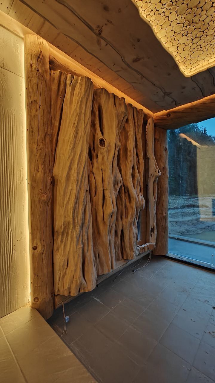 Бревна кело обладают красивой текстурой и уникальным рисунком, что делает финскую баню из древесины кело не только функциональной, но и привлекательной с точки зрения дизайна.